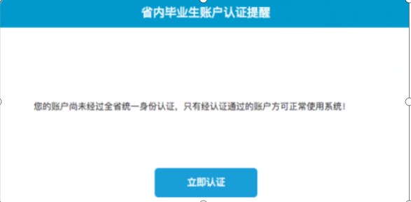 点击立即认证按钮,学生注册填写的五个关键信息与全省生源信息库核对,核对一致提示认证通过,核对不一致,提示失败。