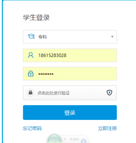 功能描述:激活账户后,通过选择毕业学历,输入注册手机号或身份证、密码和图形验证登录系统。
